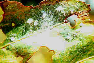 - white, woolly fibres present on leaves